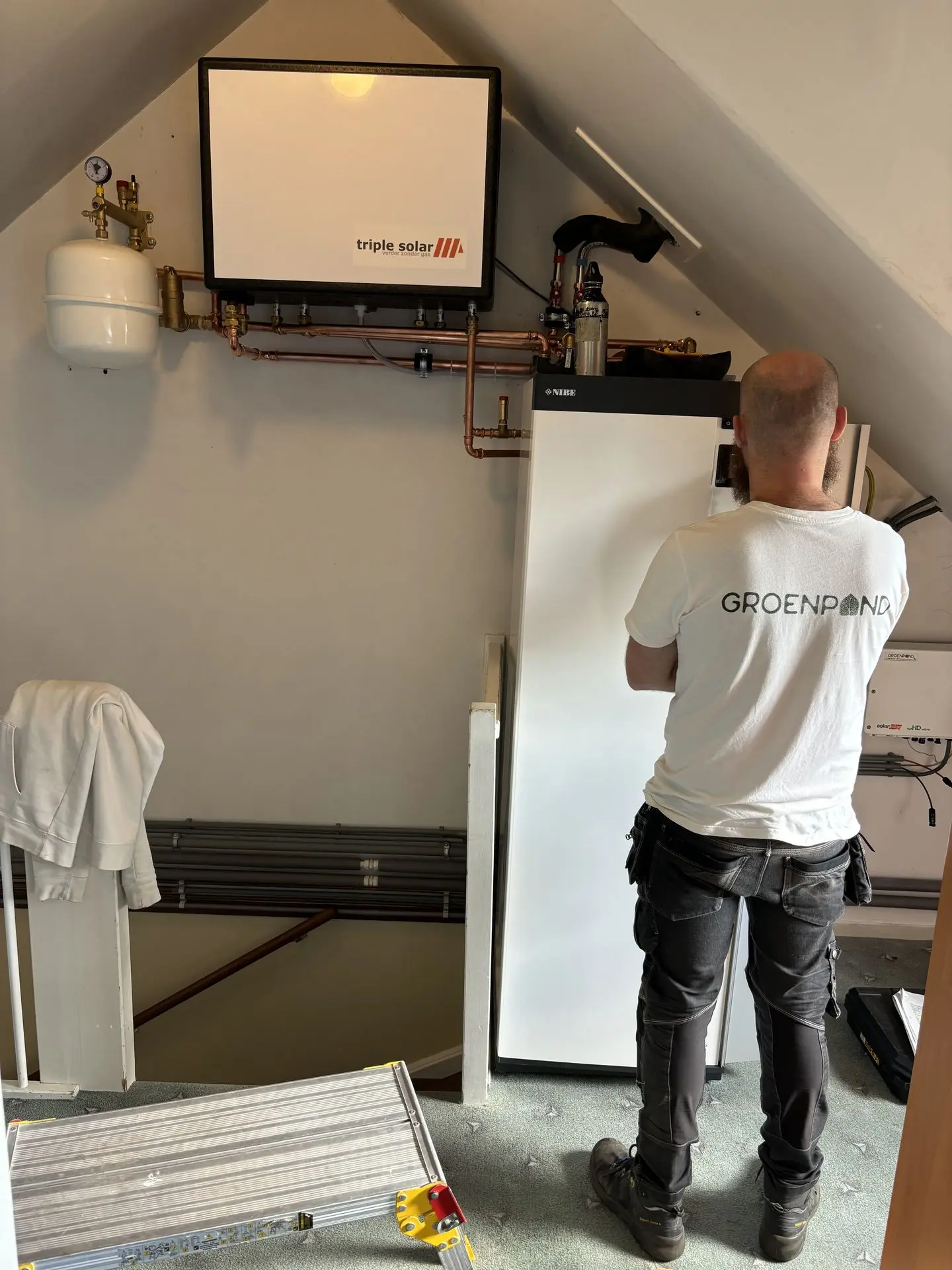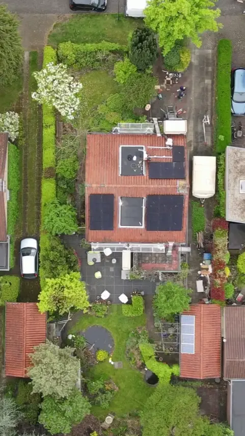 Bij Arjen installeerden we 7 PVT-panelen van Triple Solar in combinatie met een slimme NIBE warmtepomp. Daarnaast kwamen er 12 nieuwe zonnepanelen met een slimme omvormer die communiceert met de warmtepomp. Ook koos Arjen voor een dynamisch energiecontract van Groenpand Energie, zodat het systeem kan inspelen op prijsdalingen en prijspieken. De oude zonnepanelen, zonneboiler, gasketel en oude radiatoren maakten plaats voor een nieuwe opzet met Jaga lagetemperatuurradiatoren en een infraroodpaneel voor extra bijverwarming.